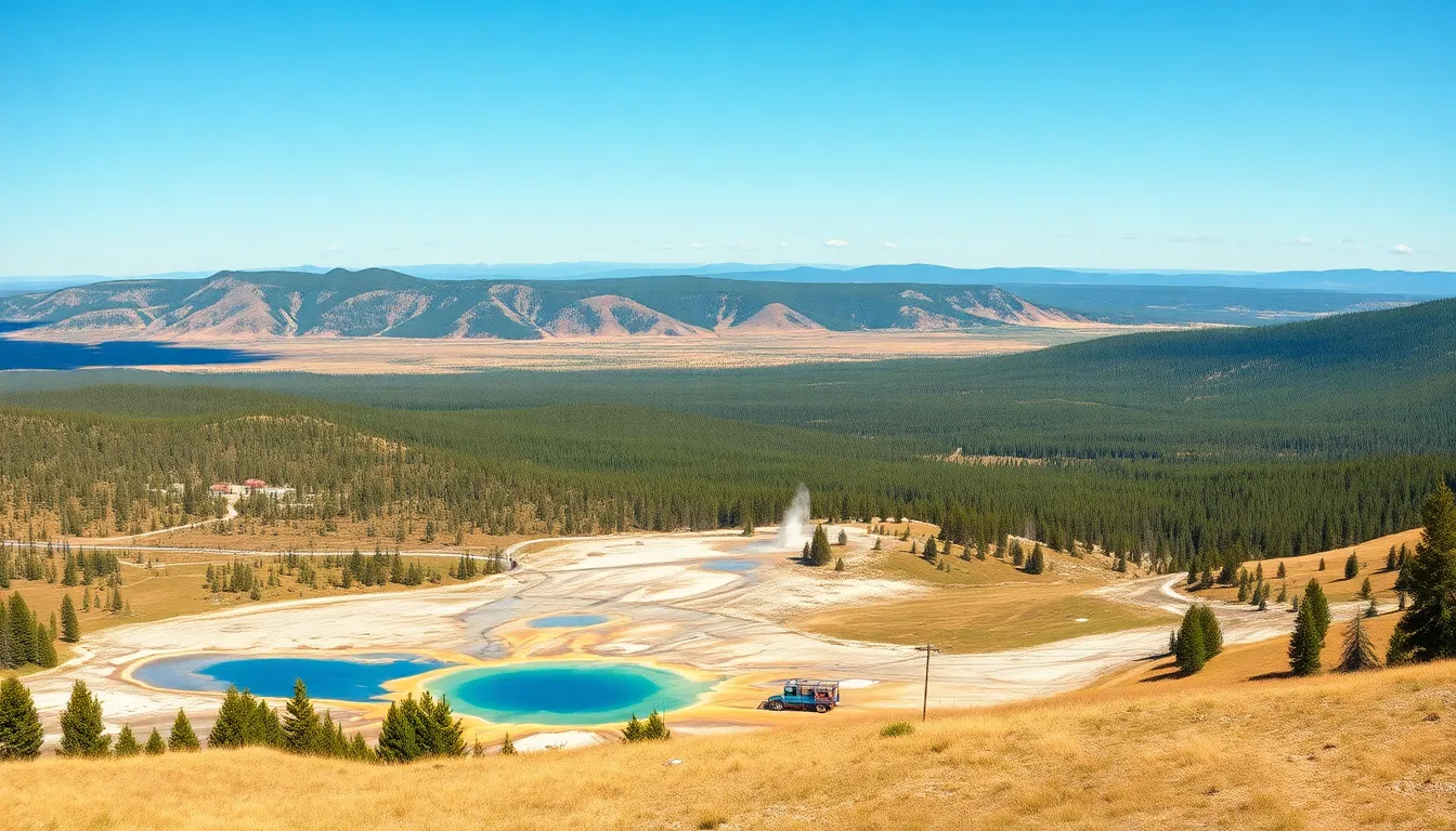 Mountains, valleys, and geothermal areas define Yellowstone’s topography. The Absaroka Range borders the park while the Yellowstone Plateau serves as its centerpiece. Unique geological formations, such as the iconic Grand Canyon of the Yellowstone, reveal striking waterfalls and colorful rock faces. Thermal features scattered throughout the park, including hot springs and mud pots, illustrate its volcanic history. Visitors encounter lush forests, expansive meadows, and clear lakes, each contributing to the park’s natural beauty.